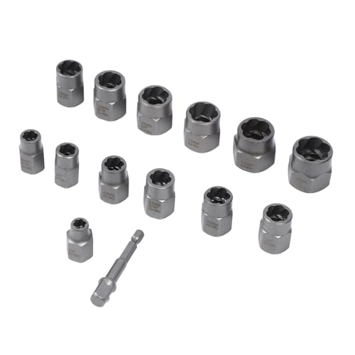 SEAFRONT Striped Lug Grut Remover Set Strong Screw/Fastening Removal Tool for Rusty Nuts, for House Mechanics and Construction Workers, 14PCs Chrome Molybdenum Steel Steel