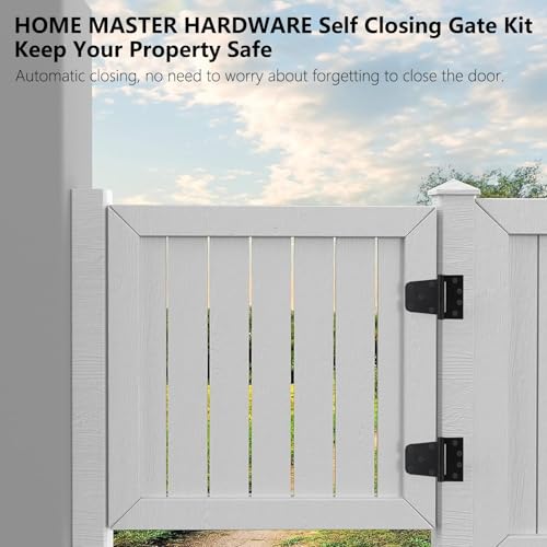 Self-Closing Spring Gate Hinge 3-1/2" Heavy Duty Automatic T Hinges Steel, Black Finish with Screws 4-Pack for Wood Fence Gate Vinyl Shed Door,HOME MASTER HARDWARE