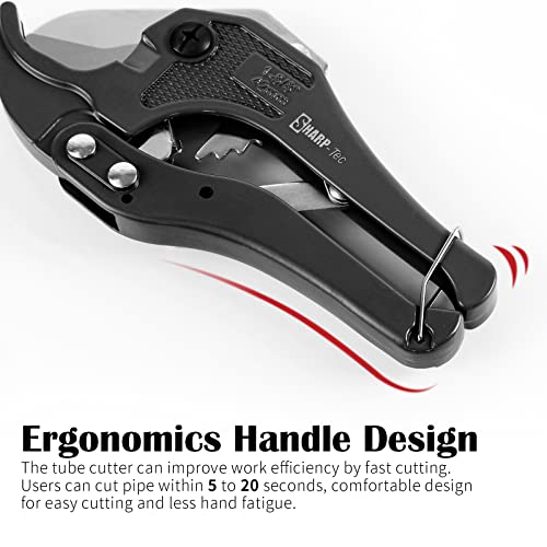 Sharp-tec PVC Pipe Cutter 3-42mm, Heavy Duty Ratchet Plastic Pipe Cutting Tool, for Cutting 42mm OD PEX, PVC and PPR Hoses, Tube Cutter Slice for Plumbing and DIY