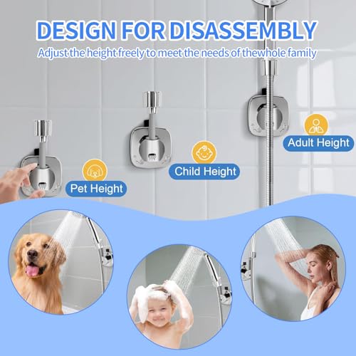 - 🚿【Drill-Free Mounting Solution】 This adjustable shower head holder requires no drilling or permanent fixtures; simply press the suction cup firmly against a smooth wall surface for instant attachment. Its silicone suction cup features a peel-off label for easy removal, and after rinsing with clean water and air-drying, it can be fully reused. It is the ideal solution for tenants and users seeking wall-friendly alternatives.