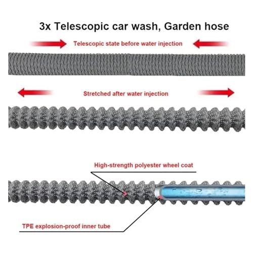 SKDJFHF Retractable stretch hose Flexible And Expandable Garden Hose High Pressure Metal Nozzle Adjustable Spray Mode Gardening Tools(125ft)