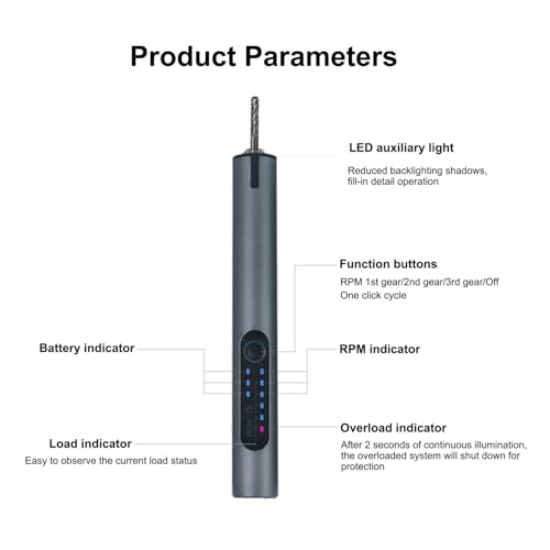 • Mini size, easy to maneuver and use, suitable for engraving pens. It has a no-load speed of up to 15,000rpm for precise and efficient carving.