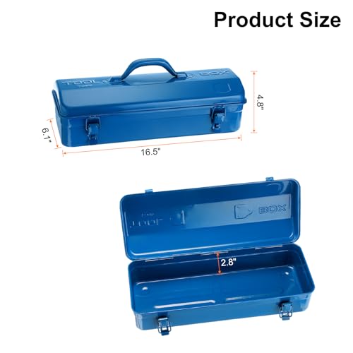 sourcing map Tool Box 16.5" Portable Steel Tool Box Hip Roof Style with Metal Latch Closure Tool Chest for Household Workshop Car, Blue