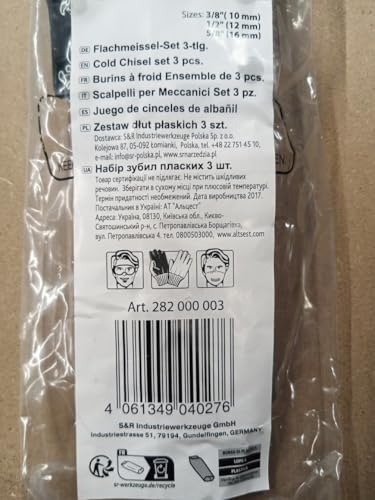 - 🛠️ Versatile 3-Piece Chisel Set: Includes flat chisels in sizes 16x170mm, 12x150mm, and 10x140mm, perfect for mechanics, bricklayers, and construction professionals
