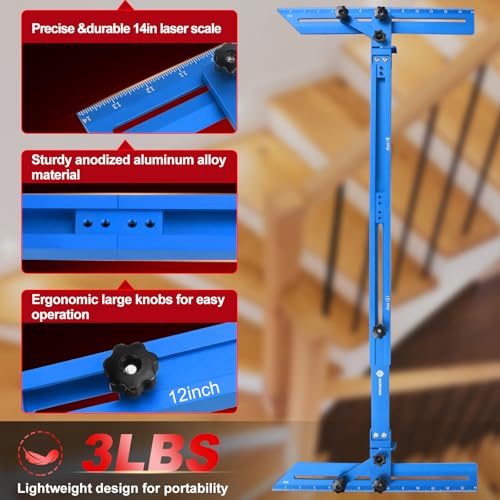 - Revolutionary Triangle Locking: Compared with other stair tread template tools at market, this stair tread jig features innovative triangle structure to firmly lock 2 pivoting ends in place. Tread angle and width can be precisely transferred to board, effectively improving your woodwork efficiency