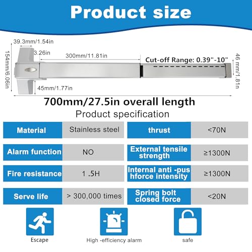 • Easy to install – Fast to assemble, include push bar, roller latch, screws and English manual to guide. this Door Hardware Push Bar Panic Exit Device can be installed both at right hand and left hand.