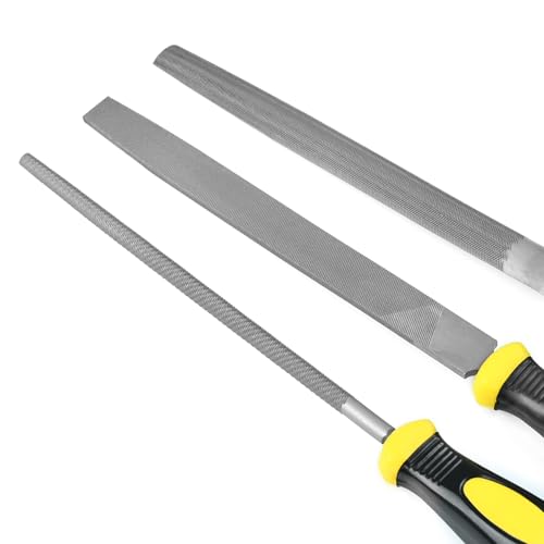TAIANJI Metal File Set, 3 Pcs 8 inch Carbon Steel File for Metal Includes Flat, Half-Round, Round for Metal Wood Plastic Fine Finishing