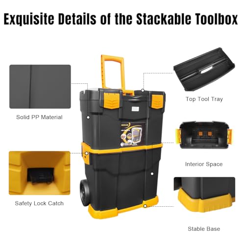 - SPACE SAVING DESIGN: Thanks to the stackable design, you can stack the tool box to take up less space when not in use and disassemble it for good portability. Both the bottom and the top have convenient handles, making them easy to move and carry.