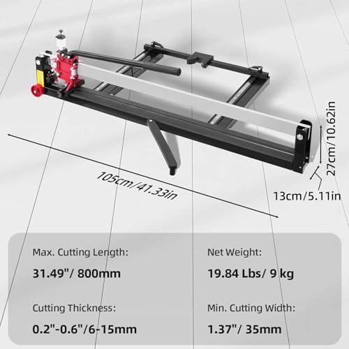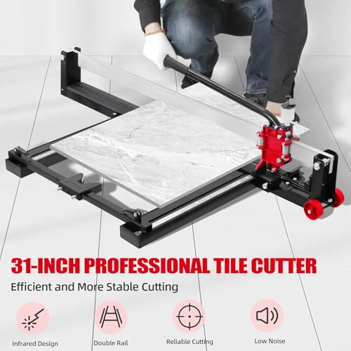 - 【Powerful Performance】This 31-inch tile cutter with tungsten carbide wheel blade is designed with high hardness and good cutting effect to complete your home improvement projects quickly and easily, suitable for straight and bevel cuts, maximum length: 31 inches/800 mm, cutting thickness: 0.2 inches-0.6 inches/6-15 mm, ideal for cutting ceramic tiles, glazed tiles and vitrified tiles, granite, floor tiles.