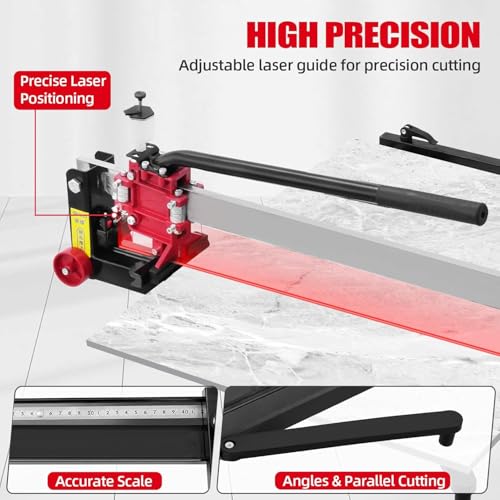 - 【Precision Positioning】Our manual tile cutters feature infrared laser positioning and a patented sliding head design to help you achieve precise positioning and straight marking in one step. The metal ridges aligned with the marking wheel path and the sliding head with a ball bearing design ensure smooth marking, allowing you to cut tiles with extreme precision.