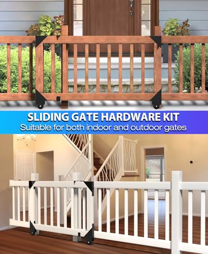 TFMUZERT Sliding Gate Kit Heavy Duty Rolling Gate Hardware Kit with Gate Latch for Smooth, Secure Gate Operation, Black