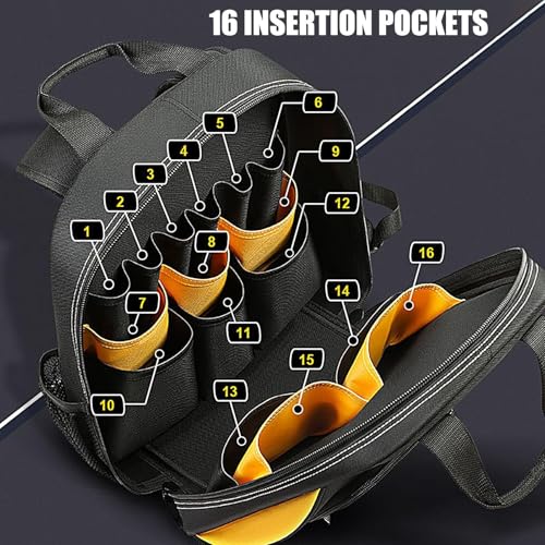 - ️ INCREASED TOOL EFFICIENCY Save time and hassle with the 15 different storage pockets of our tool backpack. You can easily find and retrieve tools such as screwdrivers, wrenches and drills. Promote productivity and maximize space for optimal organization.