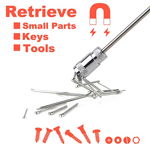 - Multi-purpose: This magnetic pickup tool is ideal for retrieving iron metals from hard to reach tight corners to easy pick up small ferrous tools, needles, nuts, screws, and other metal parts, even invisible to the eye