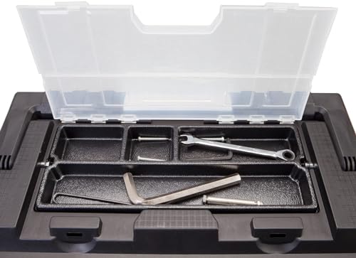 - This 19" storage tool box is equipped with an internal organizer tray which is suitable to separate small tools from large