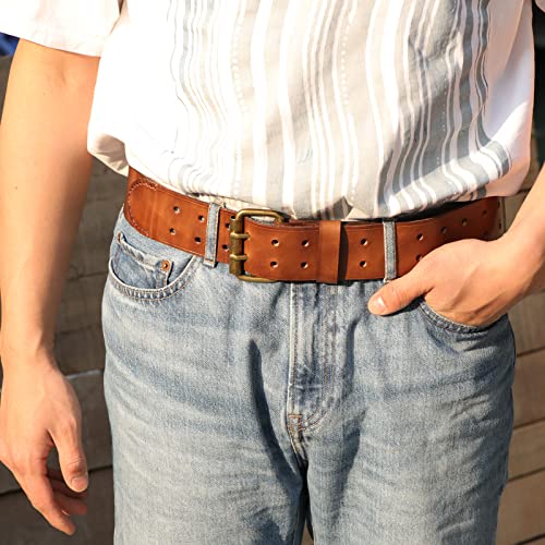 TOURBON Deluxe Cowhide Leather Belt for DIY Workshop Tool Pouch Western Cowboy Mens Strap Size L