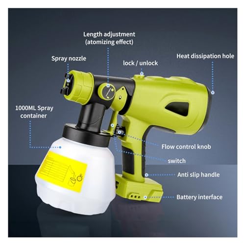 - Cordless Paint Sprayer By Battery: The cordless paint sprayer is Compatible with 20V Battery (Battery NOT Included).Enjoy the convenience of outdoor operation without being limited by wires.