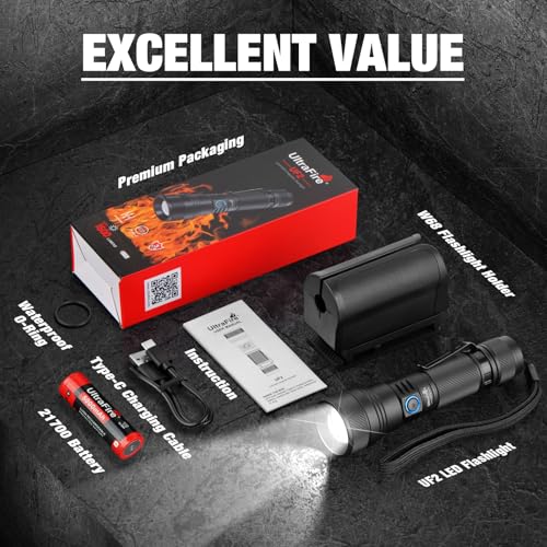 - Super Bright with Belt Holster: UltraFire UF2 has a maximum output of 1500 lumens, the maximum beam length is nearly 1804ft (550 meters). Equipped with a 360° rotatable torch mount, this tactical torch makes your job easier.
