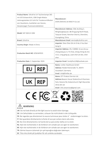 UltraFire WF-502UV-10W UV flashlight uses a high power UV LED chip, perfect for pet dry urine stain detection, fluorescence detection, etc. This uv light is powerful and bright, please use with caution and pay attention to protect your eyes.