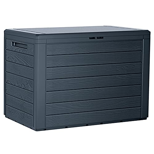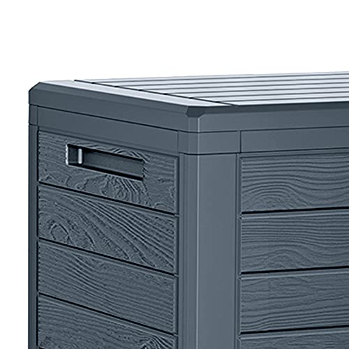 URBNLIVING Anthracite 190L Wood Design Outdoor Storage Box Garden Patio Plastic Chest Lid (Horizontal Stripes, Pack of One)