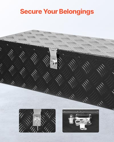 VEVOR Heavy Duty Aluminum Truck Bed Tool Box, Stripes Plated Tool Box with Side Handle and Lock Keys, Storage Toolbox Chest Organizer for Trailer, Pickup, RV, 30"x13"x9.6"(762×330.2×243.84mm), Black