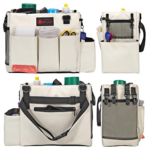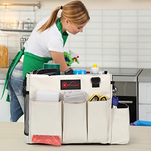 Vinsani Cleaning Caddy Multifunctional Storage Organiser Bag with Handle and Adjustable Waist and Shoulder Straps for Cleaning Supplies, Home, Craft, Car and Garden Tool Kit – Large Cream White