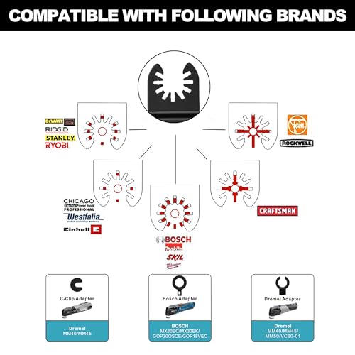 - Universal Compatible System — Our quick release saw blades are compatible with many oscillating tools in the market, such as Fein Multimaster, Ryobi, Milwaukee, Bosch, Dremel, Dewalt, Rockwell, Makita and More.【DO NOT fit Bosch MX30】