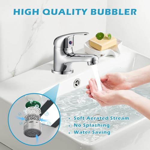 - [HOT AND COLD WATER SUPPLIED] The mono basin mixer tap has dual control of cold and hot, easily control the water temperature. Clear hot and cold logo engraved on the handle. The correct temperature water can come out quickly, giving the comfortable water temperature you want