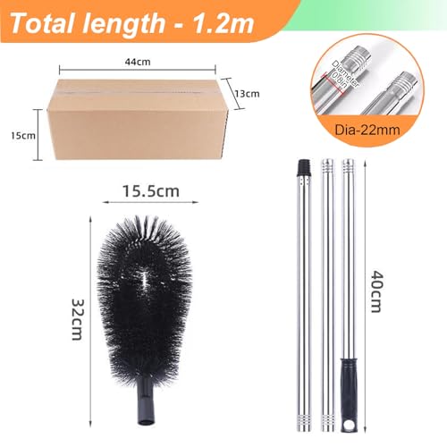 WDJBPSH Long Reach Gutter Cleaning Tools From Ground, Lightweight High Rooftops Cleaning Brush with Stainless Steel Extension Pole for Removing Leaves Debris(Black,Length 1.2m)