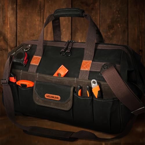 - Heavy-Duty: These tool bags for men heavy duty are made w/ a WaterProof 20oz Waxed Canvas shell and Gun-Metal hardware, the canvas tool bag can withstand harsh conditions and provides reliable tool storage.
