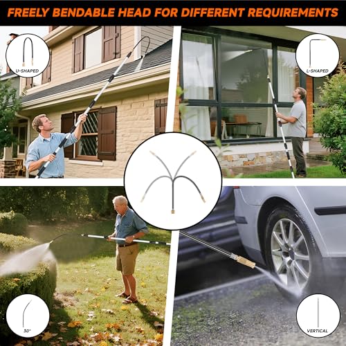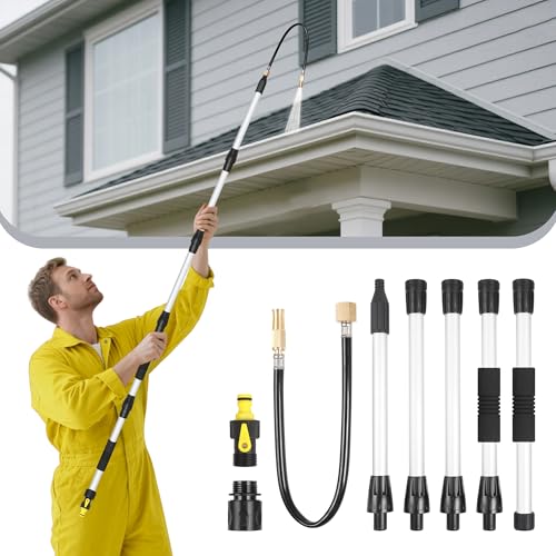 - MULTI-FUNCTIONAL USE: Not only can it be used to clean gutters, but it can also be adjusted to regulate water flow and head angle to perform various operations such as car washing, watering flowers, cleaning walls, cleaning glass, and rinsing floors