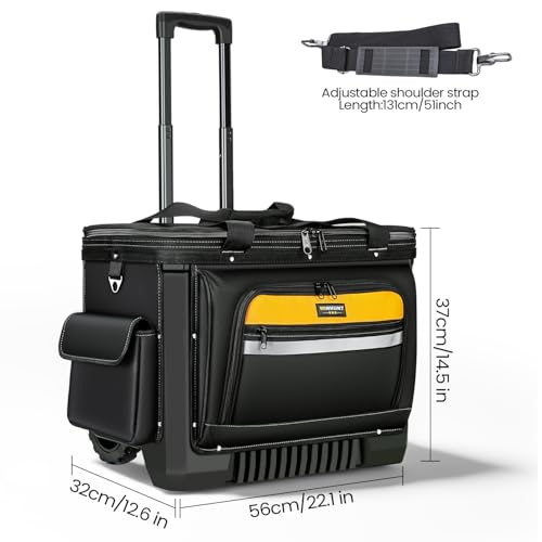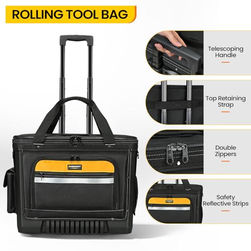 - SPACIOUS DESIGN: The large rolling tool bag features 28 pockets,multiple compartments and pockets provide organised storage space for tools and equipment, with easy-access front pocket.