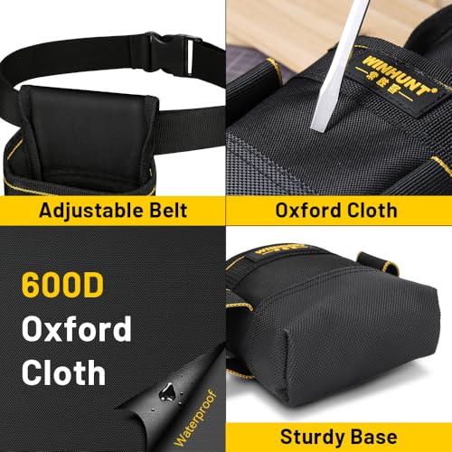 WINHUNT Small Electricians Pouch, Small Pocket Tool Bag with Adjustable Nylon Belt, Waist Work Pouch for Electricians Technician Black 8 Pockets