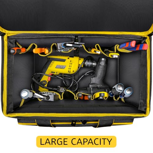 - ⛏【Ergonomically Designed】-This tool bag has a comfortable handle, telescopic handle pull rod and shoulder strap to meet different carrying needs and relieve work fatigue.