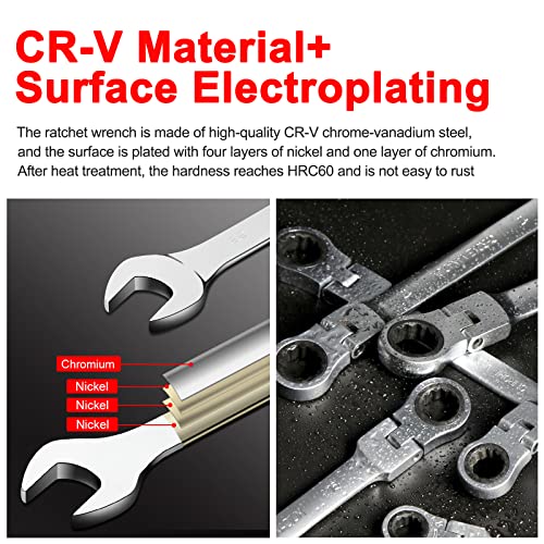- 【High quality material】 CR-V chrome-vanadium steel is adopted as a whole. After heat treatment, the hardness reaches HRC60, the torque is large, and the wear resistance is good. The surface is galvanized with four layers of nickel and one layer of chromium. The design is matte, which is not easy to rust and extends the life of the wrench.
