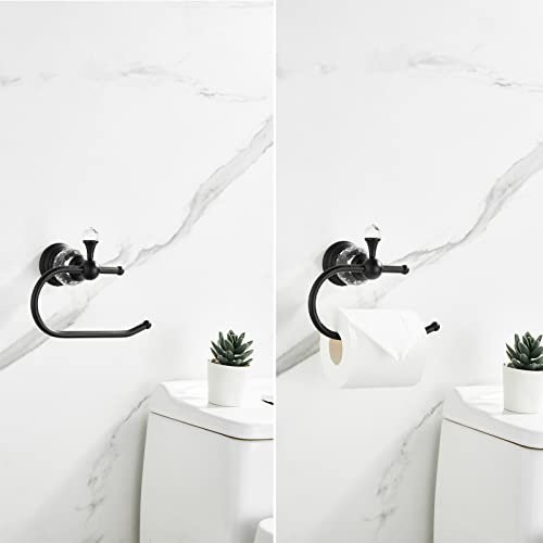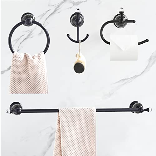 WOLIBEER Crystal Bathroom Hardware, Black 24 Inch Towel Bar Set Toilet Paper Holder Towel Ring Coat Hooks Bathroom Accessories 4 Pieces Wall Mounted