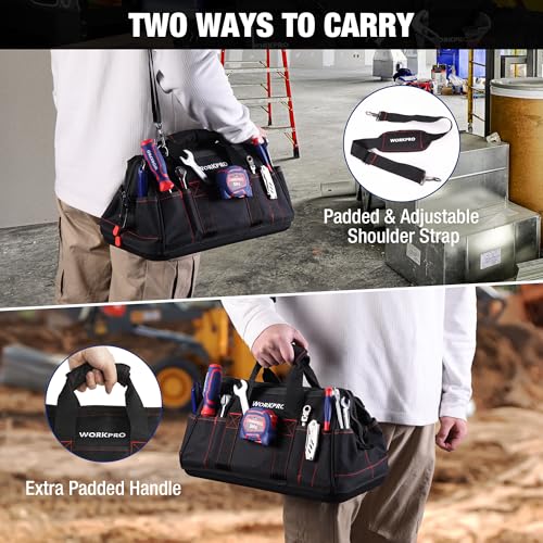 WORKPRO 16-inch Close Top Wide Mouth Tool Storage Bag with Water Proof Rubber Base, W081022A, 16"