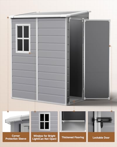 - 【Safety Design】 This plastic garden shed is designed to be lockable and comes with a door bolt, you can lock it with a padlock(Not Included), the windows cannot be opened, maximizing the safety of your private property.