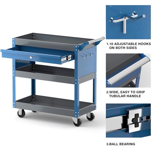 • High Quality MaterialTool storage cart is made of high hardness steel as the main material, which is sturdy enough to withstand heavy loads and wear and tear from daily use.