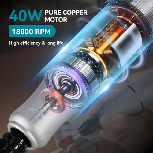 - Powerful Performance & Precision Control – Professional-grade 40W motor delivers reliable power for various DIY projects. Variable speed control from 0-18000 RPM lets you adjust speed for different materials and applications. Forward/reverse rotation function provides maximum versatility and control.