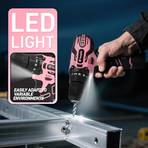 YOUGFIN Home Tool Kit with Power Drill 12V, Pink Women Cordless Drill Combo Set for Ladies, 195 Pieces Household Tools with Portable Carrying Box for Home Office Repairing & Improvement