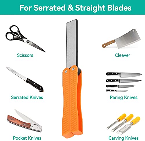 - 【PORTABLE FOLDING DESIGN】Folding plastic shell protects the inner sharpening stone well and makes it convenient to carry, perfect for outdoor use.